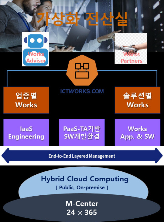 관련 컨설팅과 IaaS(인프라서비스) 엔지니어링, PaaS-TA 기반 소프트웨어 개발환경도 제공한다. 기업들은 자체 데이터센터와 퍼블릭 클라우드를 단일 플랫폼 위에서 통합 관리하면서 보안관제 서비스를 통해 혹시 모를 위험상황에도 즉각 대처할 수 있게 된다. 또한 각각의 업무 형태에 대해 AI 기반의 관리자동화 솔루션인 '옵스카우'(OpsCow)를 적용, 경쟁력과 효율성을 확보할 수 있게 돕는다.